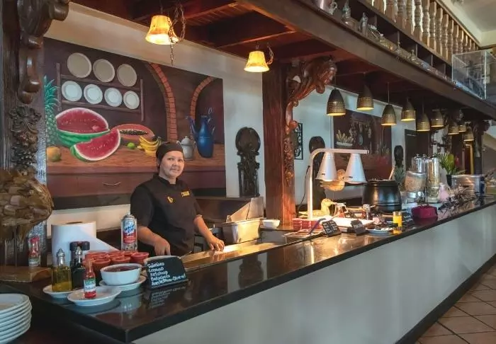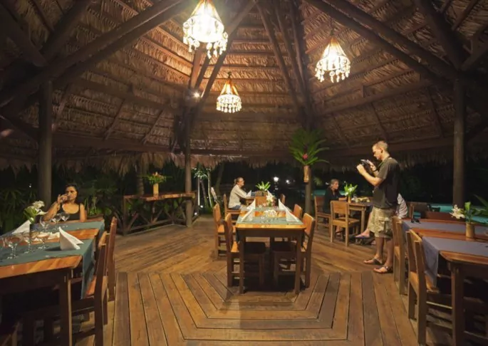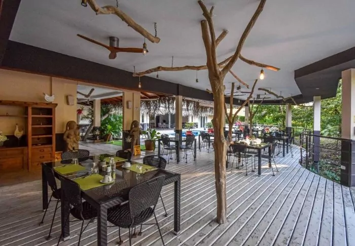 Enjoy a meal in the hotel’s rustic restaurant in tropical surroundings, serenaded by birds in the background. Both local and international dishes are served.