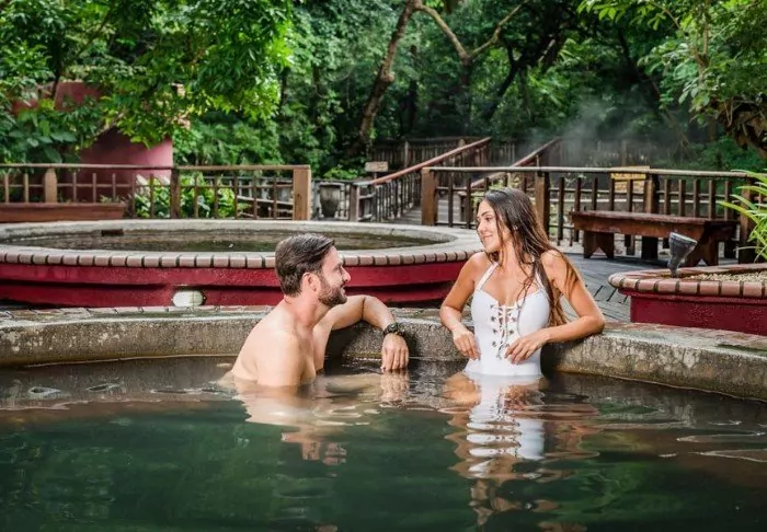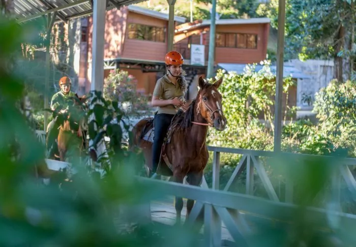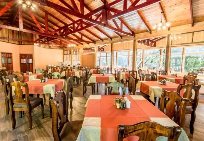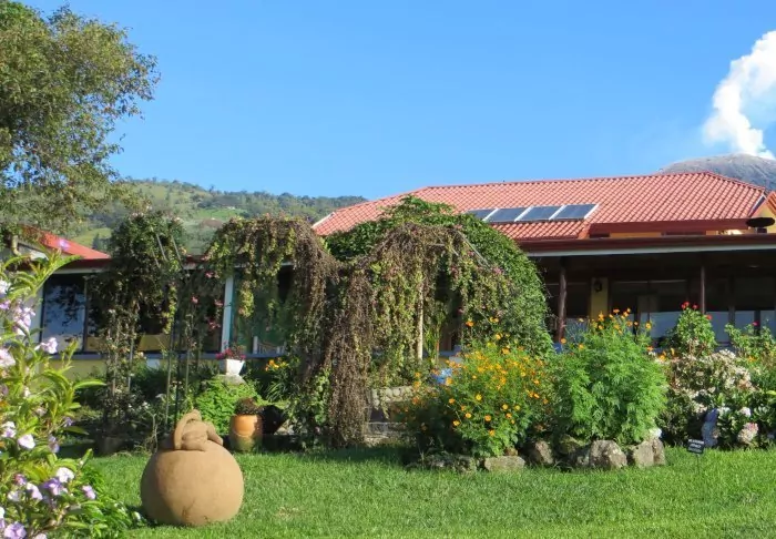 There is also a swimming pool filled with natural spring water from the volcano. There are 54 rooms, each with a small veranda where you can enjoy the view of the volcanoes and the hacienda. All rooms are equipped with air conditioning, safe and TV.
