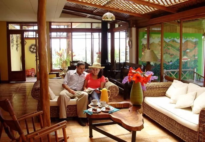 The Otocuma restaurant serves delicious local and international dishes made from local produce. From here, you have a lovely view of the lush nature of the area, and you may even be lucky enough to spot one of the many hummingbirds.
