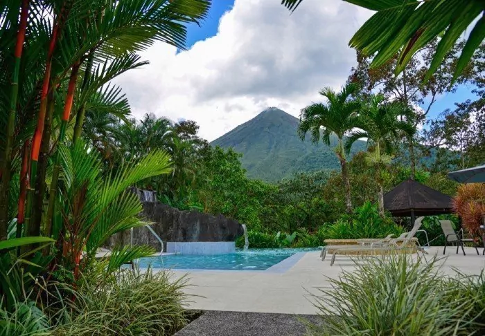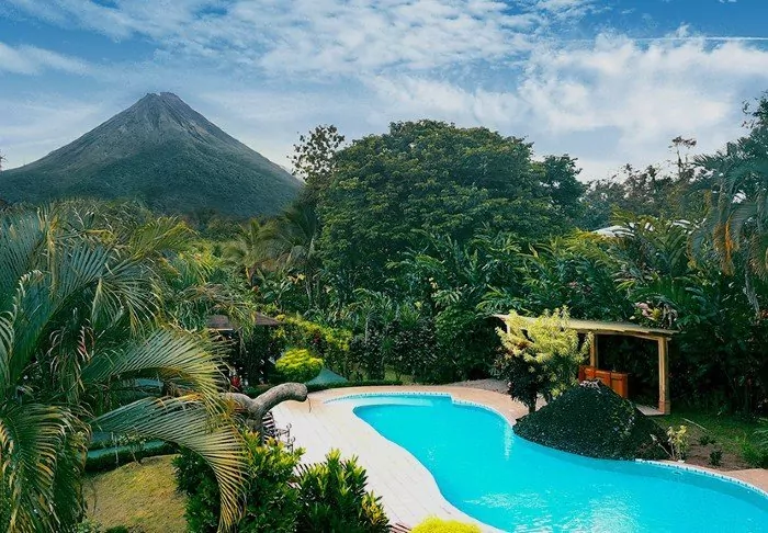 The cosy Hotel Arenal Montechiari is set in scenic surroundings and enjoys stunning views of the iconic Arenal volcano. The hotel is just a 5–10-minute walk from the centre of La Fortuna.