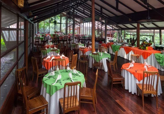 At the restaurant, you can order traditional Costa Rican dishes and European dishes made from local ingredients while enjoying the views of the lush nature surrounding the lodge. This is also where your breakfast (included) is served.