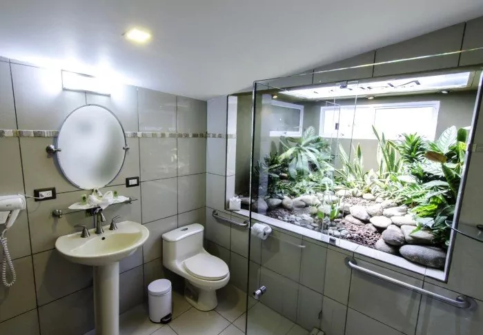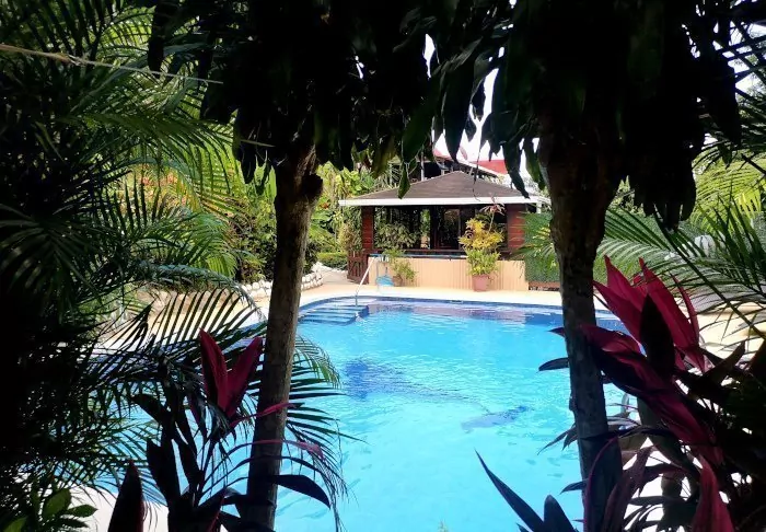 The hotel has only 25 rooms and is built around a small, lush garden with a swimming pool and spa bath in the middle. Here, you can relax in a sun lounger with a good book, or enjoy a cool drink, or a Costa Rican coffee from the hotel bar.
