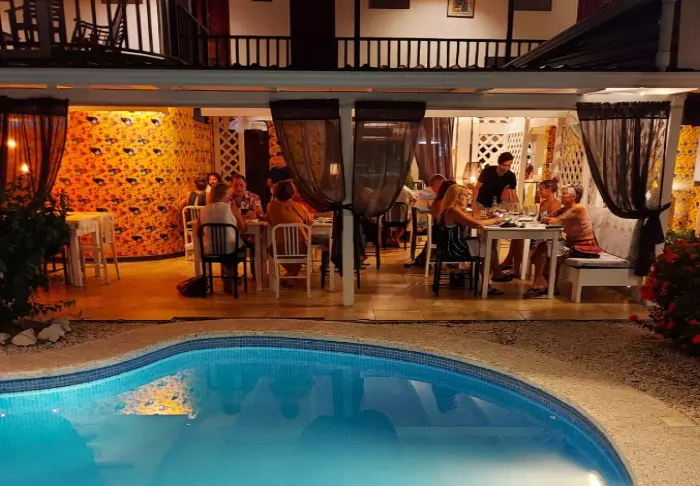 The hotel adjoins restaurant MaMa Gui, and this is where your breakfast (included) is served. The restaurant is also open for lunch and dinner and serves an exciting blend of Italian and Costa Rican food.