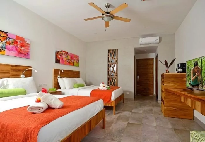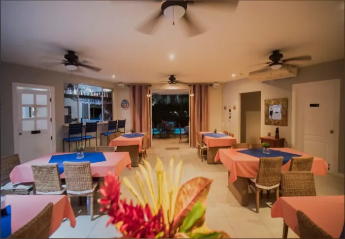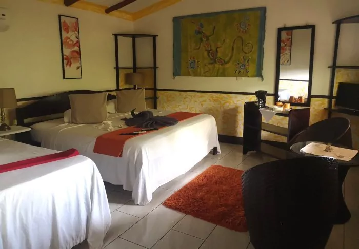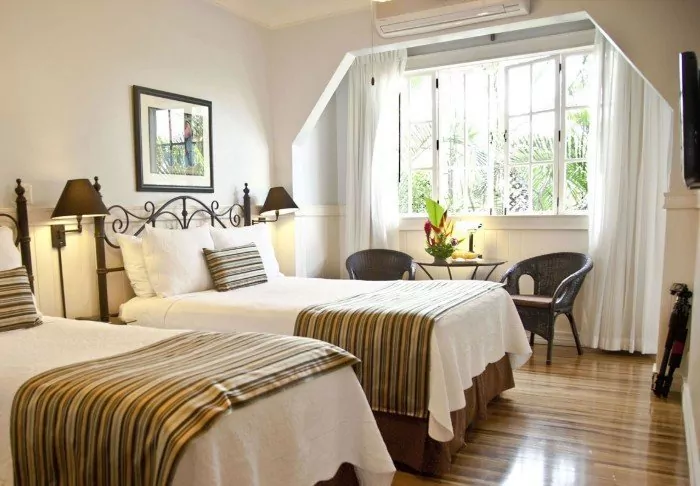 The hotel restaurant overlooks the beautiful tropical garden, which you can enjoy while having your breakfast served. There are two swimming pools in the more private part of the garden, where you can take a refreshing dip or relax in a sun lounger. You may even be lucky enough to see monkeys, humming birds and iguanas in the garden.