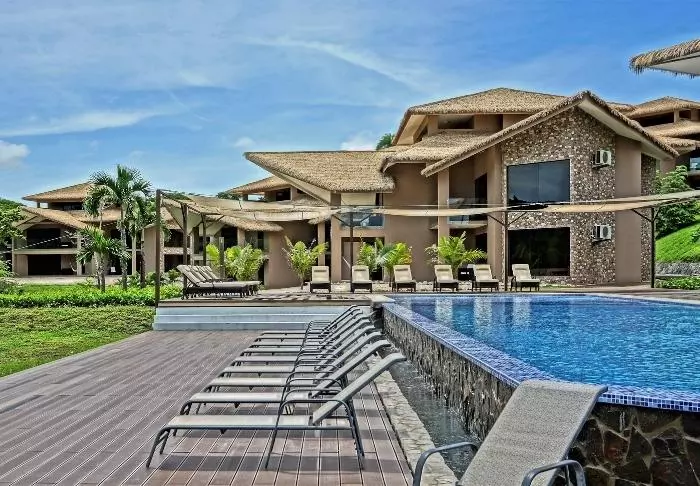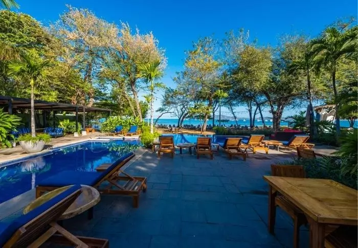Azura Beach Resort is an exclusive all-inclusive resort for adults only, located on the beautiful Playa Sámara beach. Surrounded by lush nature, this resort offers a relaxing oasis right on Costa Rica’s Pacific coast, featuring stunning azure waters. This luxurious retreat offers a wide range of facilities, including a fitness centre, two pools, and a delightful spa area where you can indulge in various treatments or a soothing massage. The two inviting pools and easy access to the beach make it simple to unwind and enjoy some peaceful sunbathing.