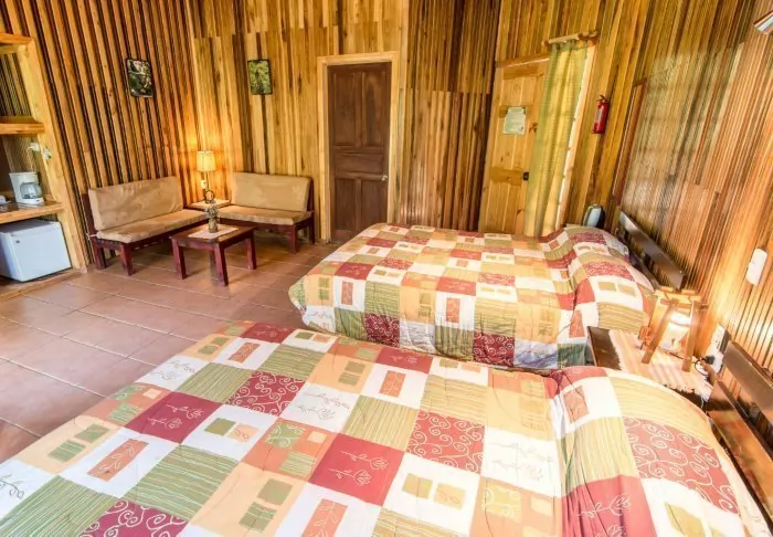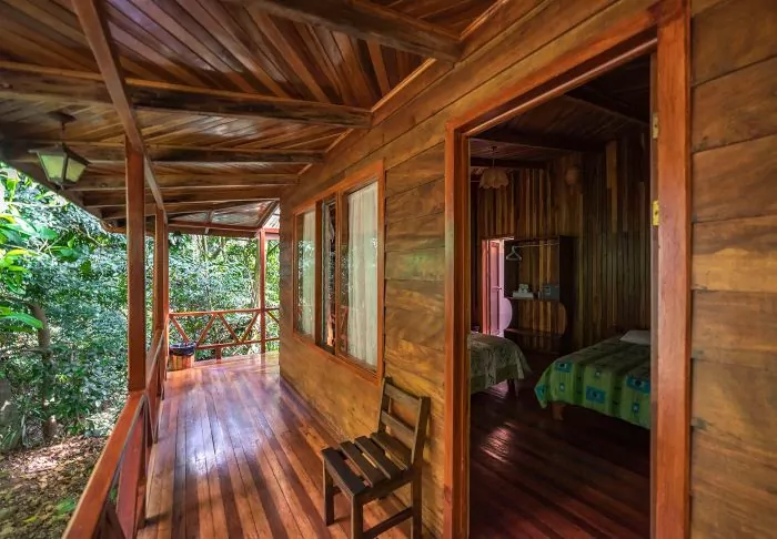 The lodge consists of wooden cabins built in a rustic style in keeping with the local nature. All cabins have an en suite bathroom and a TV. They all have their own balcony, which is the ideal place to enjoy a quiet moment with a good cup of Costa Rican coffee and a book with a view of the wild nature of the jungle.