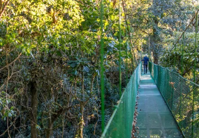 A stay at Jaguarundi Lodge places you in a central location in the small village of Santa Elena in the area by Monteverde’s beautiful cloud forest. Within a short distance, you’ll find everything from restaurants and cafés to small hiking trails. The hotel is known for having its own hanging bridge right in its “backyard”. So you have every opportunity to start the day with a walk straight into the lush nature, which buzzes with life from all the animals in the area.