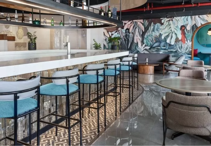 The small bar serves chilled drinks, cocktails and light snacks.