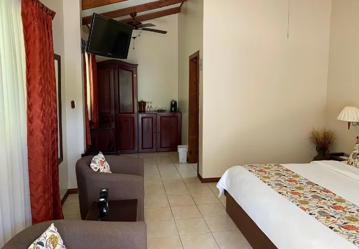 The hotel has 30 spacious rooms, all with cable TV, a telephone, a safe, Wi-Fi and a coffee maker with locally produced coffee from Monteverde.