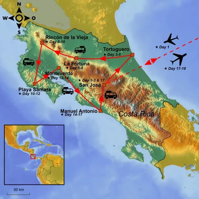 Your tour to Costa Rica is drawing to an end, and you will be picked up and driven back to the airport in San José. Your journey home begins here, with connecting flight(s) along the way.
