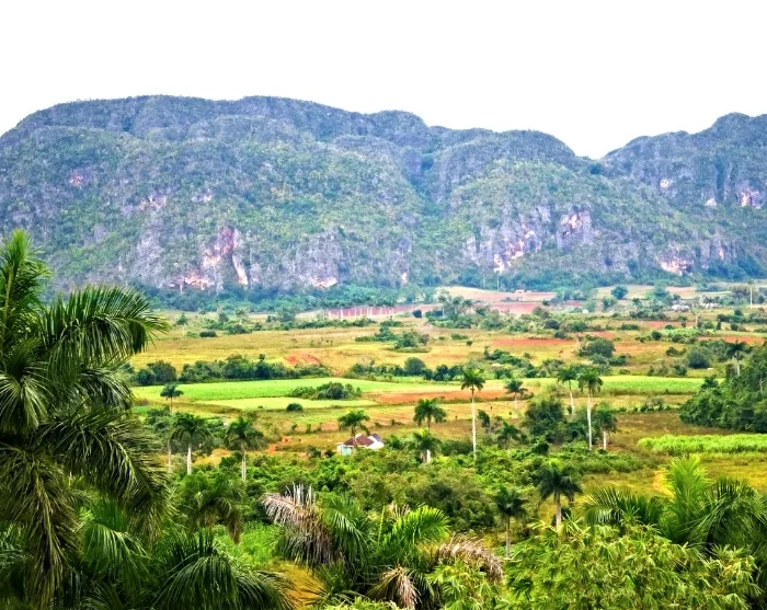 In the Viñales Valley, you enjoy spectacular outdoor experiences. The landscape is dominated by fertile valleys with mango trees, banana trees and limestone mountains (Mogotes).