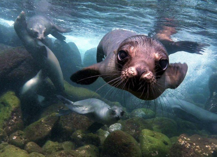 After lunch back on the boat, it’s time for snorkelling in the clear water where beautiful colourful fish await you. The main attraction of the day, however, is a swim with the curious and playful sea lions.