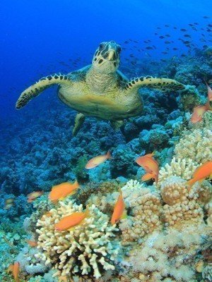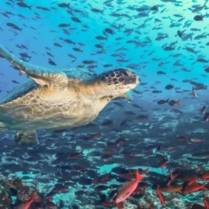 Life on the islands probably originally arrived via the water or the air before evolving further. The Galapagos Islands are home to the most species not found elsewhere in the world, e.g. the Galápagos turtle, which the islands are named after.