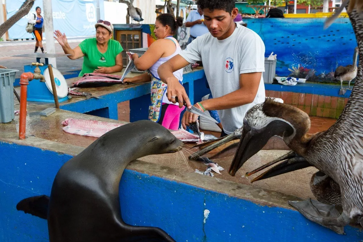You have two days to yourself in Puerto Ayora. If you’re up early, then head to the small fish market on Avenida Charles Darwin, which attracts hungry, curious sea lions and pelicans hoping for a small snack.