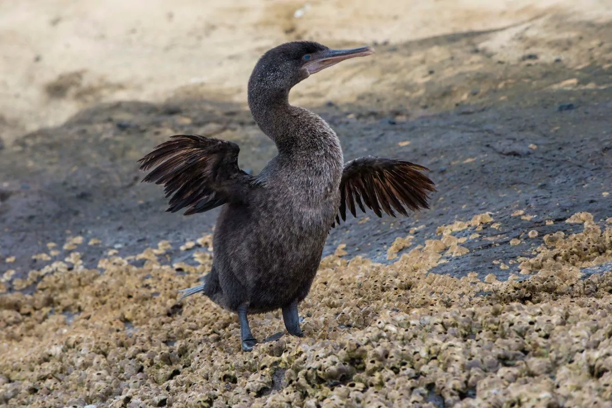 On the island, you can also see a large population of the magnificent, colourful marine iguana, the Galapagos tortoise (June – September), and the Galapagos cormorant, which is endemic to the Galapagos Islands and is unique in that it is unable to fly. In fact, the Galapagos cormorant’s wings are just a third of the size they should be for such a big bird, making it impossible for them to fly.