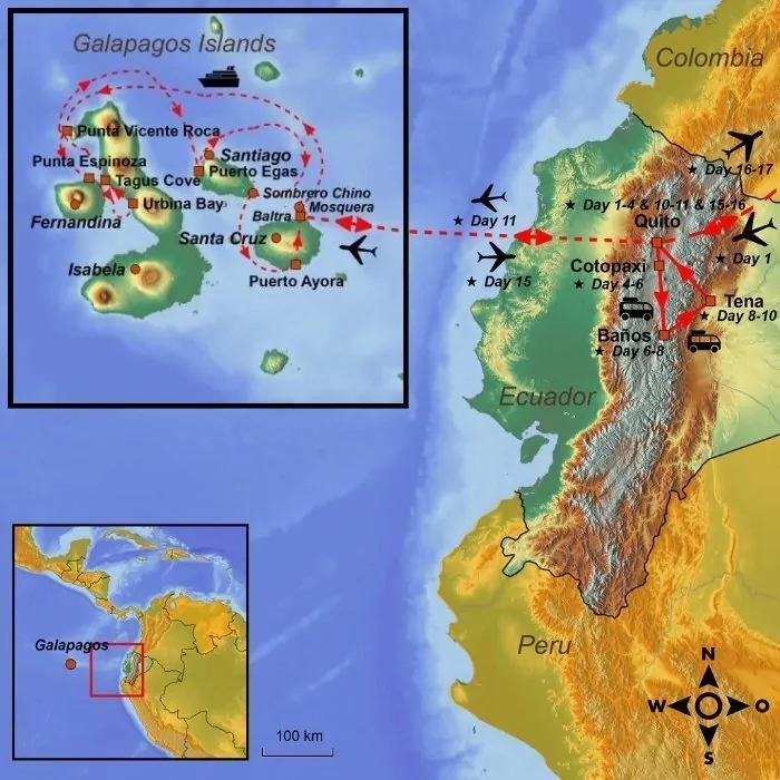 Look forward to the ultimate nature and animal experiences on this tour to Ecuador. This small country offers high mountains, active volcanoes, thundering waterfalls, lush rainforest and of course, the enchanting Galapagos Islands.