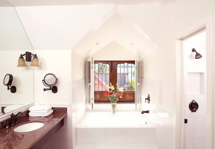 The rooms at the hotel are all uniquely and elegantly decorated, featuring wooden floors and antique furnishings. Every room comes equipped with air conditioning, a ceiling fan, a TV, a mini fridge, and tea and coffee making facilities.