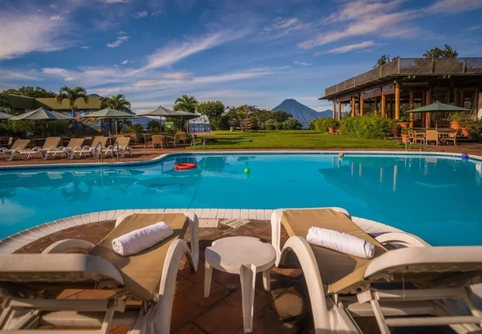 After a day packed with experiences, you can enjoy a dip in the pool or an exotic drink on a sun lounger in the garden. A few hundred metres from the hotel, you will find Lake Atitlán, where you can experience an enchanting view of the water with the majestic volcanoes on the horizon.