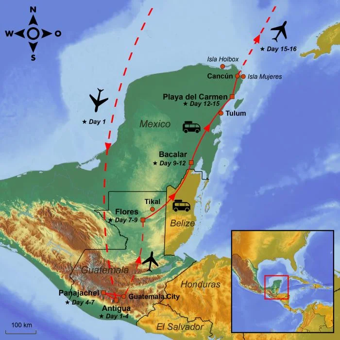 Embark on an adventurous tour where you’ll discover Guatemala’s colonial charm in Antigua, cruise across the stunning Lake Atitlán, explore the majestic Mayan ruins of Tikal, and soak up the tranquillity of the Bacalar lagoon – before rounding off your holiday with blissful days on the Caribbean beaches of Playa del Carmen.