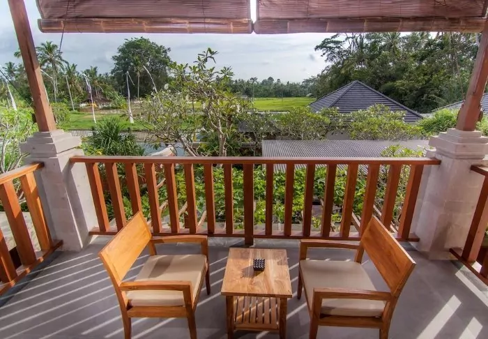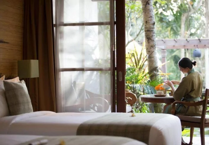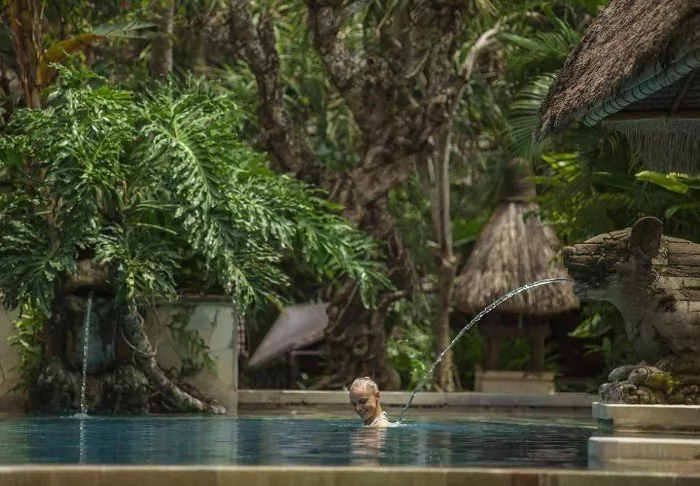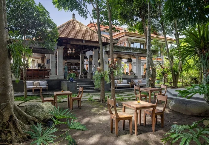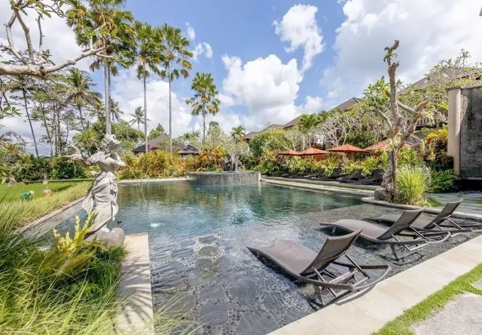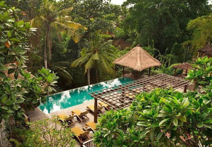 The resort has its own free shuttle bus to Ubud town centre, a 5–10-minute drive away.