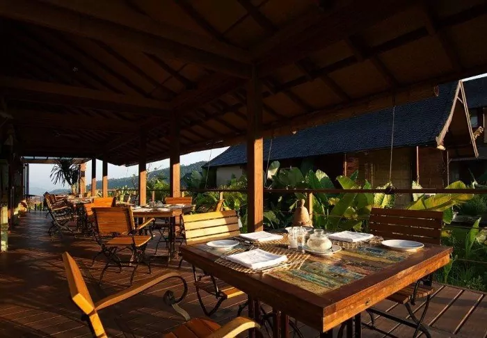 The rooms are spread between 12 bungalows situated like terraces up the green slopes. They are all pleasant and simply appointed and feature tea and coffee making facilities, a fan, a minibar, a safety deposit box, mosquito nets and free Wi-Fi. On your private terrace, you can immerse yourself in a good book and simply enjoy the stillness.