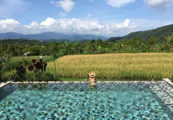 Sanak Retreat Bali is a beautiful, peaceful oasis situated in the most beautiful surroundings with a painterly view of the mountains and the grass-green rice paddies in Munduk.