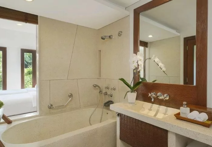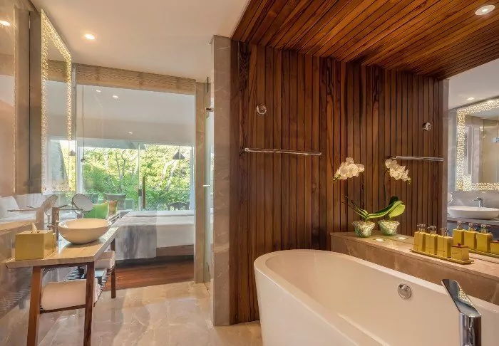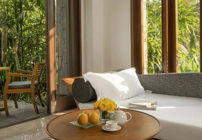 The rooms and villas are elegantly appointed with a mix of Balinese elements and modern facilities. They are also spacious, bright, and inviting. All room and villa types have a private balcony or terrace, ensuring you can sit back and enjoy the breathtaking views. All the necessary amenities are also provided to ensure you have a comfortable stay at Maya Ubud Resort. This includes air conditioning, a minibar, a coffee machine, tea making facilities, a safe, an iron and ironing board, a large flat screen TV, Wi-Fi access and a Bluetooth speaker. In the bathroom, there is an extensive selection of complimentary toiletries as well as a hair dryer, bathrobes, and slippers.