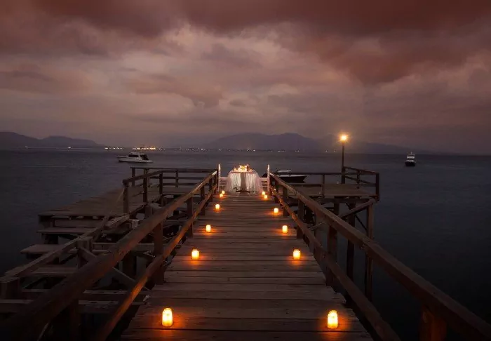 The restaurant is located right on the beach, and it is possible (for a fee) to arrange a completely private romantic dinner on your balcony or perhaps on a secluded area of the beach.