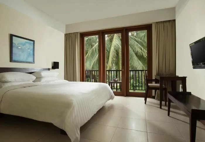 Maya Sanur has 103 bright and well-appointed rooms of at least 57 m2. All rooms have Wi-Fi, air conditioning, a minibar, tea and coffee making facilities, a safe, a TV and a telephone. They are also furnished with a desk and a seating area. The bathroom has both a shower and a bathtub, as well as bathrobes, slippers and toiletries. From your private balcony, you have a view of the lush garden, and you can sit here and read a book or enjoy a cup of Balinese coffee.