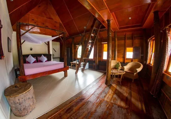 The hotel is cosy and has a lovely, relaxed atmosphere. It exudes authentic Indonesian style with traditional lumbung cottages and bungalows.