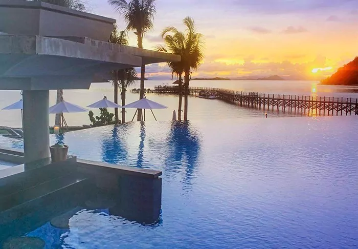 Jeeva Klui has a lovely infinity pool and a gym and day spa, offering various massages and beauty treatments. There is also a small shop and a library.