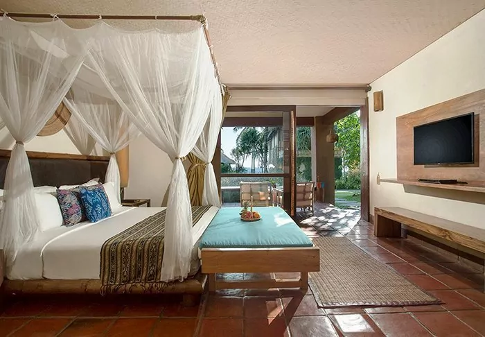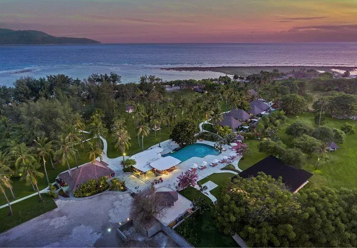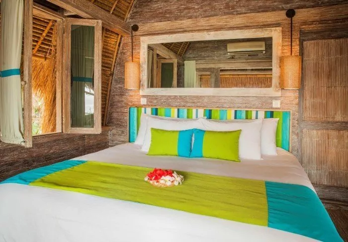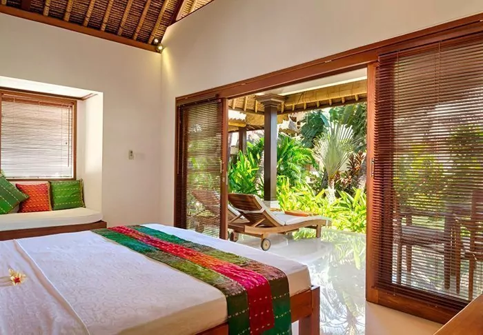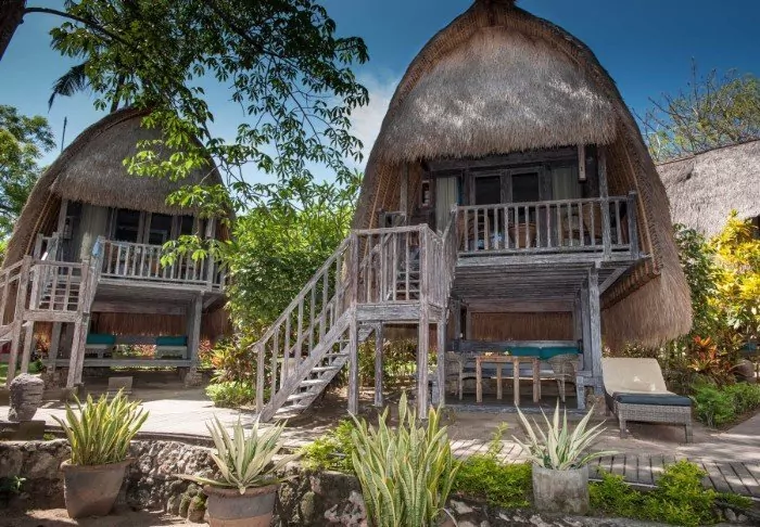 The resort is surrounded by a large tropical garden and is built in traditional Sasak style. All 35 rooms are furnished with beautiful natural materials from floor to ceiling and embellished with beautiful woven fabrics. All offer air conditioning, Wi-Fi, a minibar, free bottled water, a safe, a TV and a DVD player. The bathroom has a rain shower, a hair dryer and complimentary toiletries. From your balcony, you can enjoy the quiet breeze and the view of the garden planted with mango trees and palm trees or the calm waters of the bay.