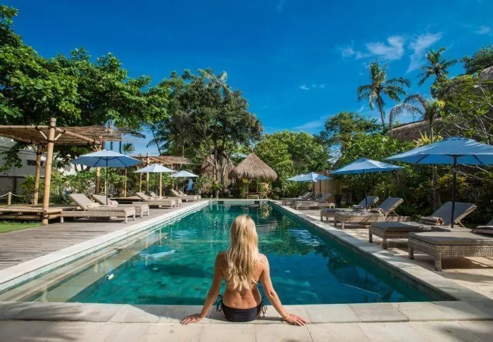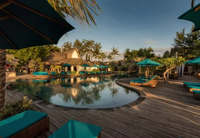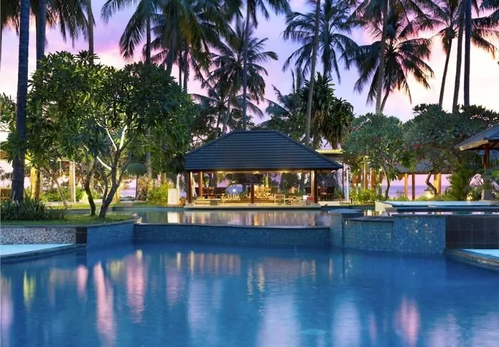 On the southern tip of Gili Trawangan sits the luxurious Pondok Santi Estate Hotel. In 2005, the hotel was built from an old coconut plantation, which today has been transformed into a tropical garden.