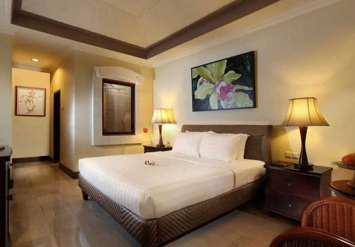 Prama Sanur was built in 1974, but the hotel has since undergone several renovations. The hotel has 428 rooms and suites with views of either the tropical gardens, the pool or the sea. They are decorated in Balinese style with wooden furniture and fine carvings. All rooms are equipped with amenities such as air conditioning, wi-fi, electric kettle for coffee and tea, minibar, safe as well as TV and telephone. The bathrooms are equipped with a shower as well as complimentary toiletries and a hairdryer.