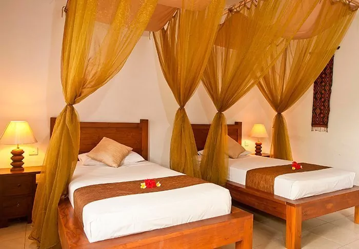 The resort offers a wide range of activities and facilities that you can use completely free of charge during your stay. Snorkelling equipment, kayaks and paddleboards are all available free of charge for exploring the calm sea. In addition, there is a well-equipped gym, and the opportunity to join a relaxing and meditative yoga class. The resort also has two lovely swimming pools that invite you to take a refreshing dip. You can also make use of the resort’s shuttle service to and from Lovina town or borrow one of the hotel’s bicycles for an adventure on two wheels in the surrounding area.