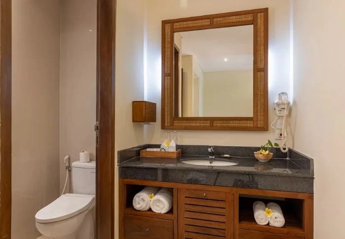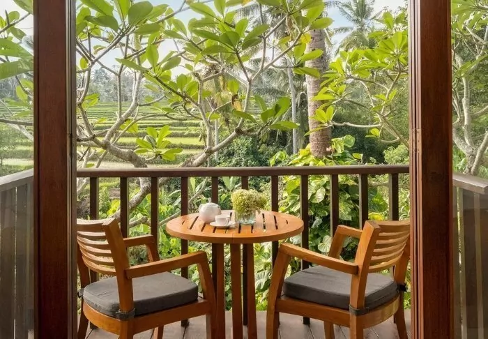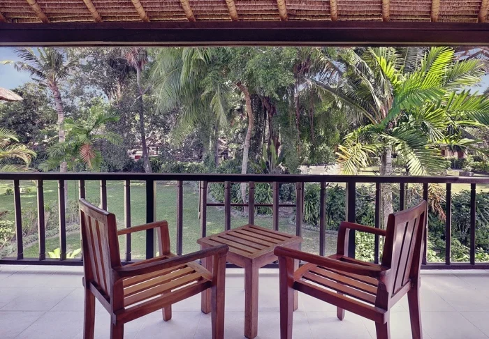 Your stay includes a Wisma Seni Superior room as standard – the resort’s latest room category. Elegantly decorated in Balinese style and nestled among verdant rice fields and an organically shaped swimming pool, the room is bright and spacious, featuring air conditioning, a TV, a safety box, and Wi-Fi. A private balcony complete with table and chairs invites you to unwind as you take in the views of the green surroundings. The bathroom is designed in authentic Balinese style with a separate toilet, wash area, and shower cubicle.