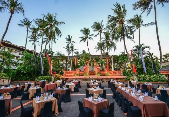 Look forward to gourmet experiences at the hotel’s various restaurants. Start the morning at Tirta Restaurant with a lovely breakfast buffet, enjoy authentic Indonesian dishes at Lada Restaurant, or taste Italian favorites at Basilico Italian Pavilion. Bamboo Bar & Lounge offers a relaxed atmosphere and an eye-catching decor. It is the ideal place to relax with an afternoon cocktail to the sound of the sea, and at sunset you can enjoy snacks and delicious baked pizzas to the sound of live music.