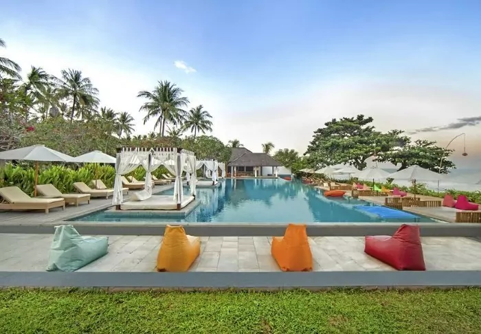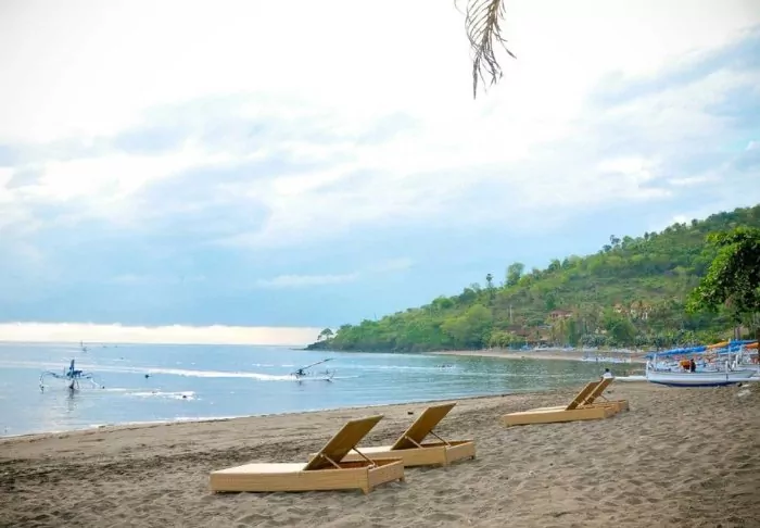 Sun loungers and parasols are available free of charge on the beach, allowing you to lie down and relax in the Indonesian heat.