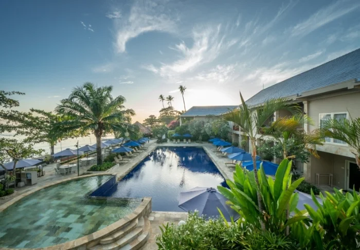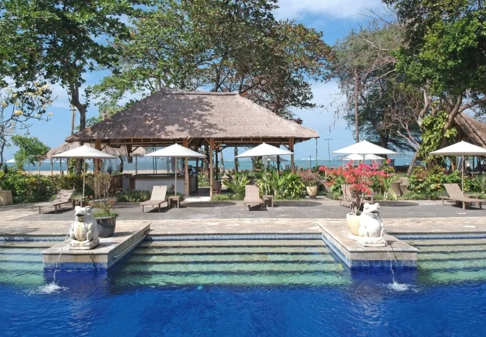 The resort enjoys a unique location right on Sanur’s wonderful sandy beach, which is made for sunbathing and swimming. If you’re up early, you can watch the sun rise over the traditional fishing boats out on the horizon.