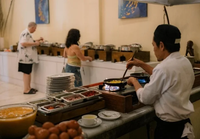 When hunger strikes, the resort offers several appealing options. The main restaurant, Pandawa Restaurant, serves a varied breakfast buffet featuring both international dishes, freshly baked treats, and an omelette station. At lunch and dinner, the menu ranges from fresh salads to succulent sirloin steaks and freshly caught seafood.