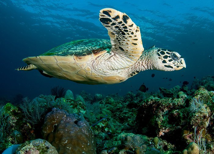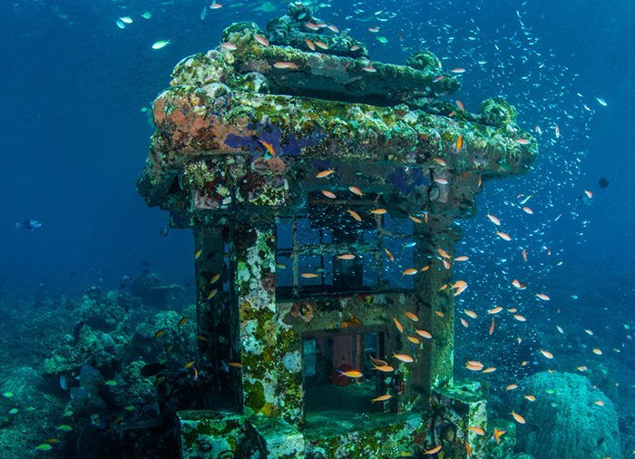From the dark volcanic beach, you make your way out into the sea where, just 20–70 metres from the water’s edge, a fantastic, colourful world of corals, sea fans, tropical fish in all the colours of the rainbow, sea turtles and, amazingly, an underwater temple and statues opens up. Your guide will show you around in the water and point out all the beautiful fish.