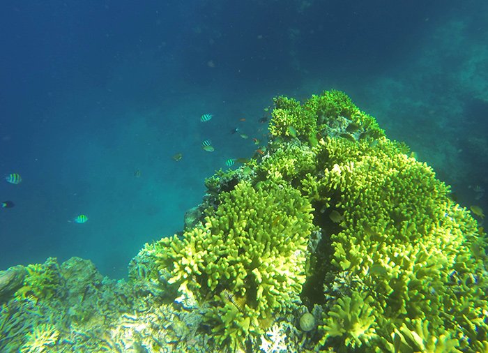 When you arrive at the reef off Menjangan, the guide will tell you what to do under the water and instruct you on how the mask, snorkel, and flippers work. Before jumping into the water, it’s important to remember to apply sunscreen and possibly wear a UV top, as you will be swimming around on the surface for several hours.