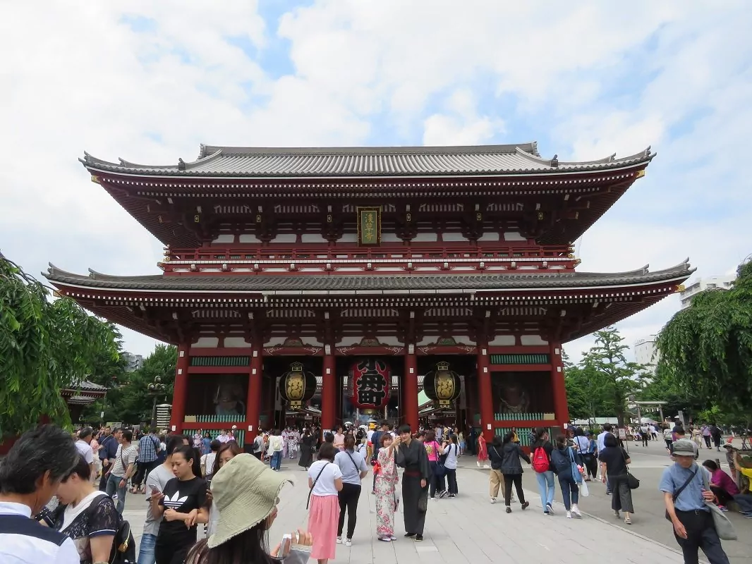 Asakusa is also where you can find the oldest temple in Japan, Sensoji Temple. Sensoji is the oldest temple in Tokyo, and for many Japanese people, coming here to light incense is of profound importance. Nakamise street leads up to Sensoji Temple. Nakamise consists of souvenir shops and food stalls, and the street offers great opportunities to buy traditional souvenirs.