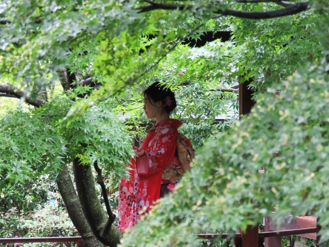 You can simply walk the streets and take it all in. You’ll soon discover that there are many Japanese tourists in Kyoto, and one of the popular activities here is to dress in a traditional kimono for a day – and this goes for men and women alike. They are wonderfully colourful, and young people in particular clearly it to be a lot of fun.