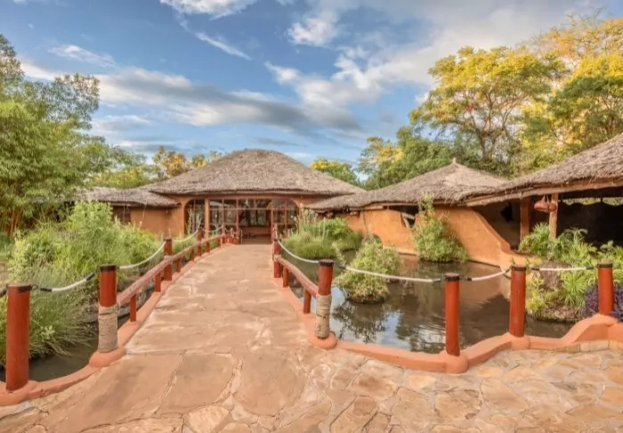 The classic stone-built lodge has its very own watering hole, which is frequented daily by elephant, buffalos and a wide variety of wild animals.