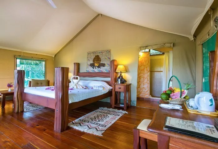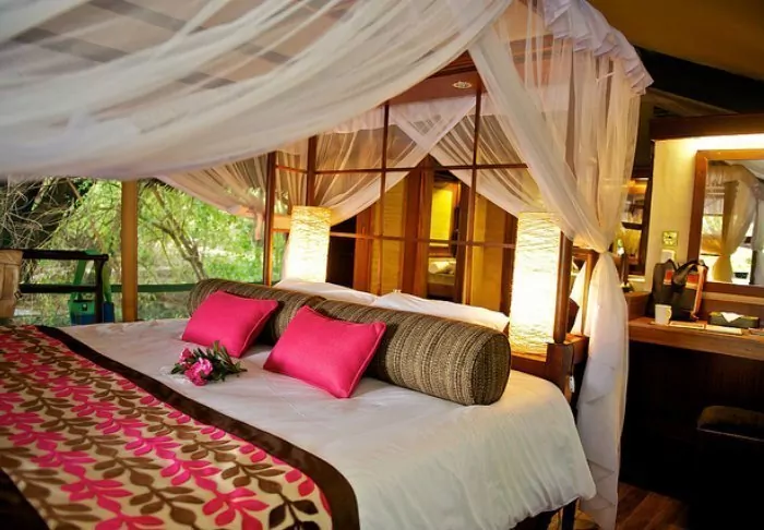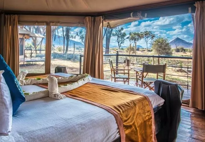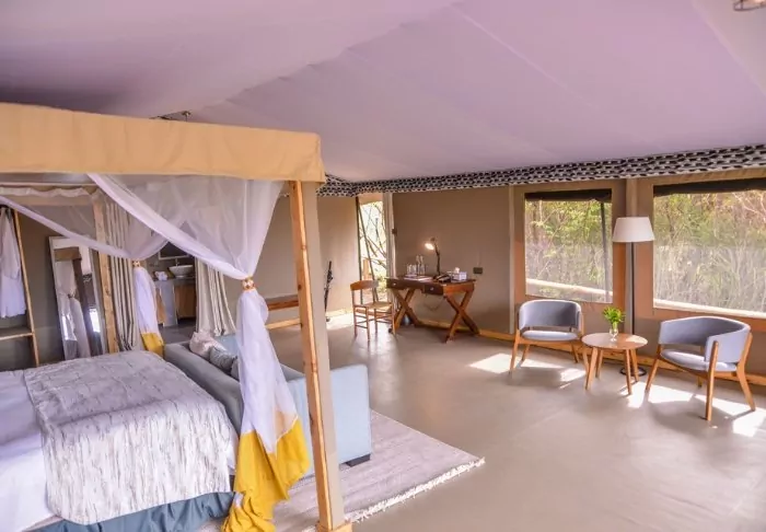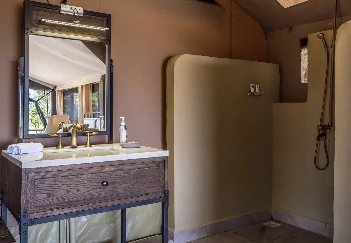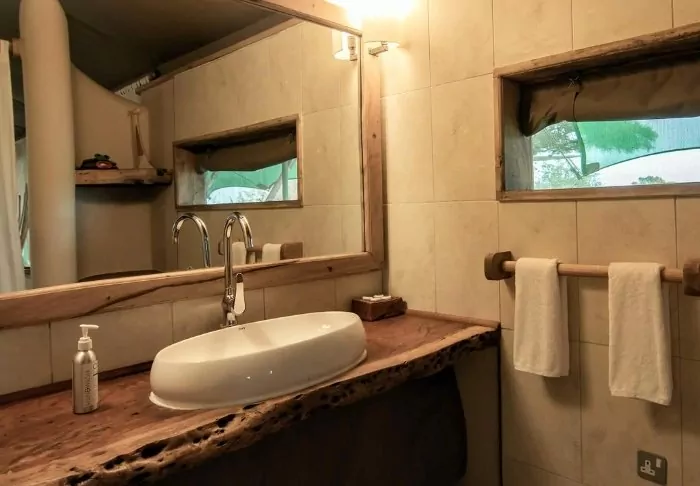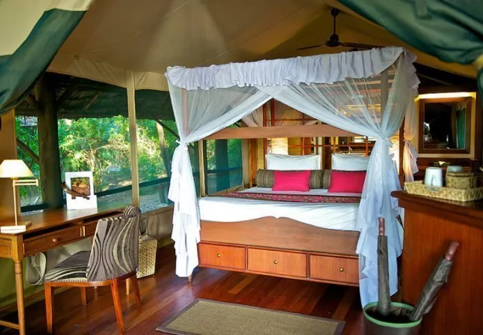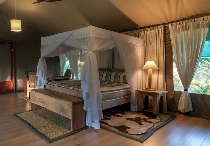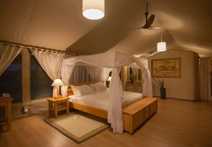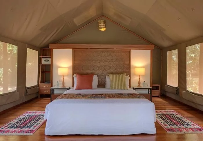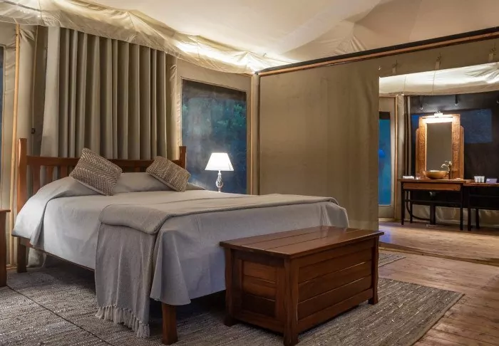 “Tents” is probably the wrong word to use to describe them. “Suites” would be better. The walls might be made of canvas, allowing you to both hear and smell the nature around you, but everything else is like something from a 5-star hotel room.