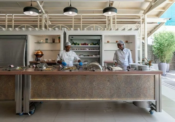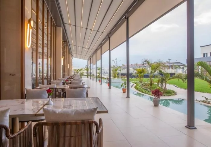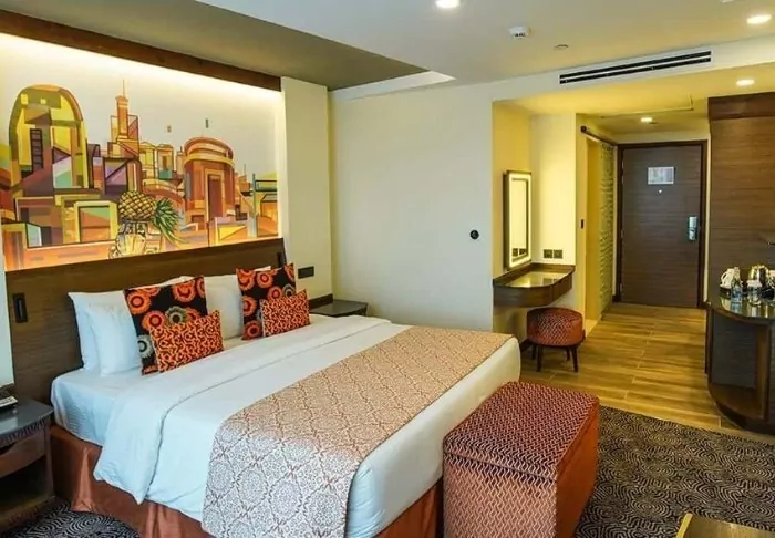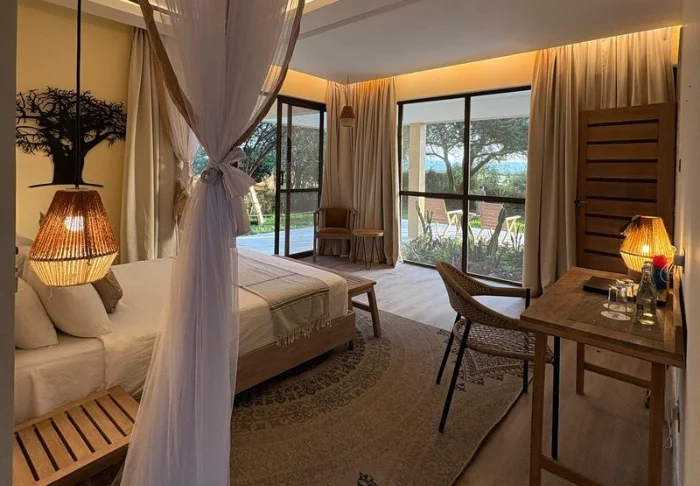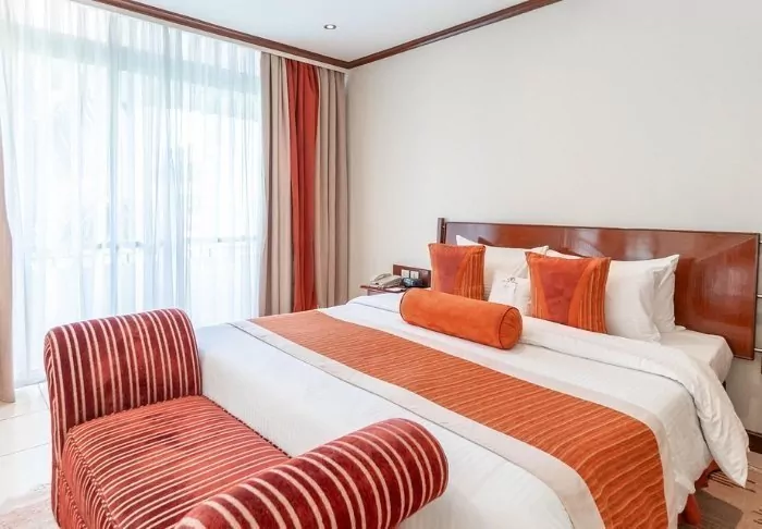 The hotel has 96 rooms, which are all decorated in an attractive mix of Western and African style. All the rooms are equipped with a minibar, safe, flat-screen TV, air conditioning, hairdryer and tea/coffee-making facilities.