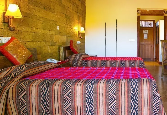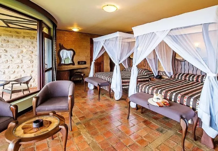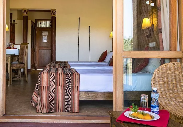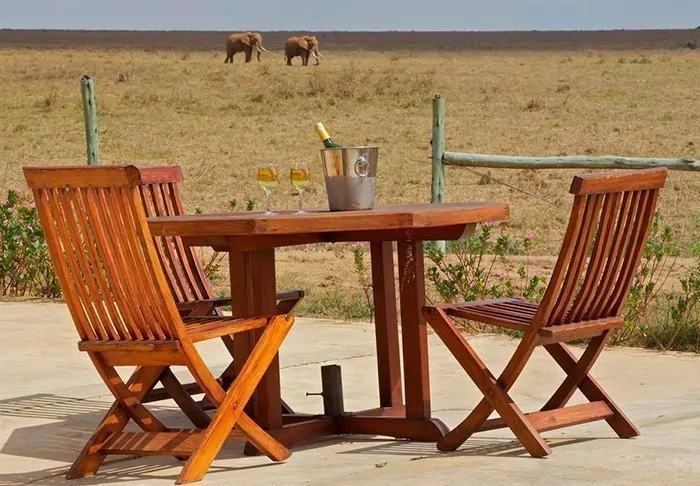 There are 56 rooms at the lodge. All rooms have their own veranda, some with views of the watering hole and others with views over the Chyulu Hills.