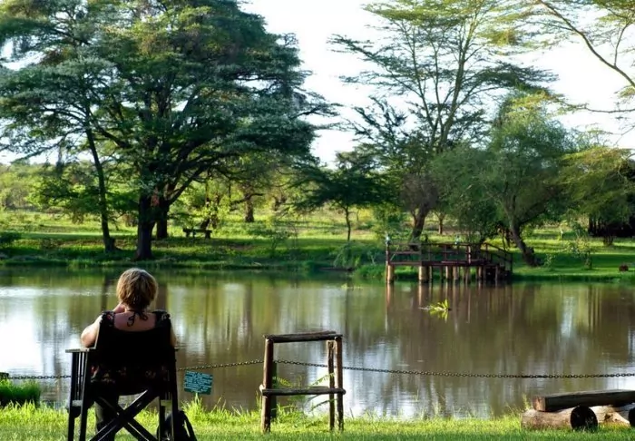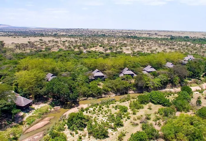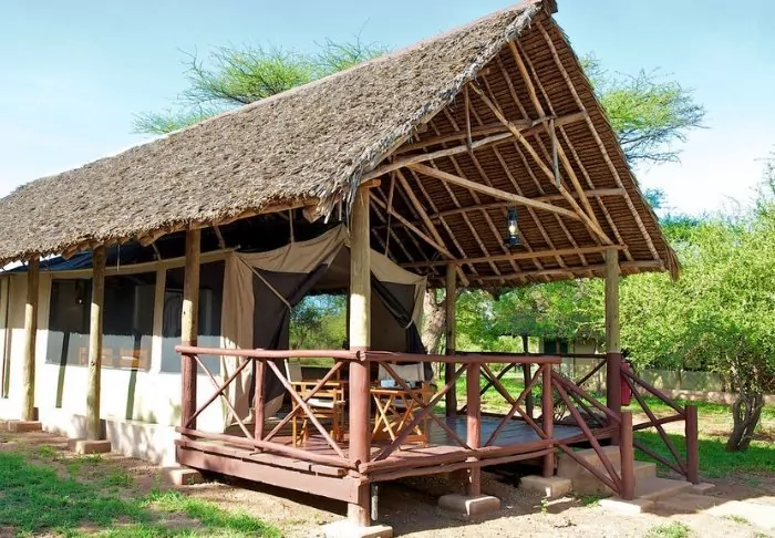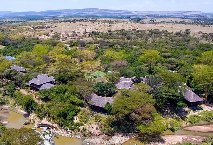 The camp is located near the Sante River, and the grassy lawn in front of the camp offers an incredible view of Mt. Kilimanjaro. The river has formed a dam in front of the lodge, which attracts countless birds, while hippopotamuses and crocodiles frolic in the water (at night, they move to the lawn in front of the lodge).