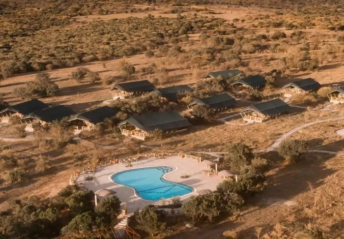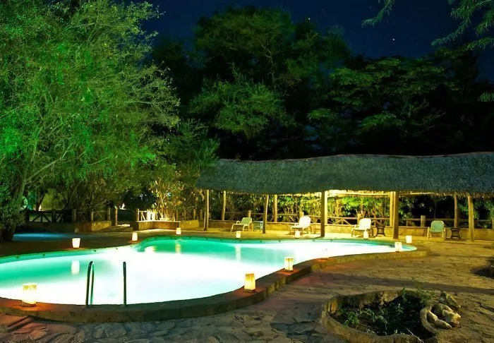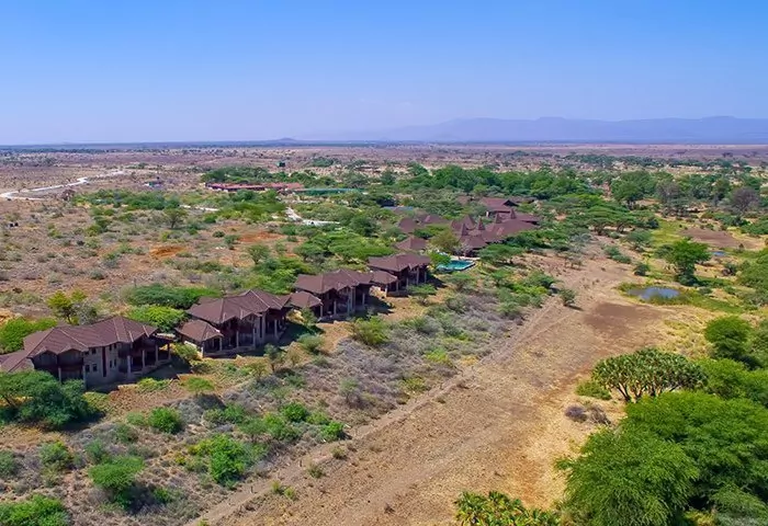 Ashnil Aruba Lodge is located in the heart of Tsavo East National Park, near the Aruba dam built across the Voi river. The reservoir results in a large number of animals and birds attracted to area.